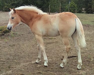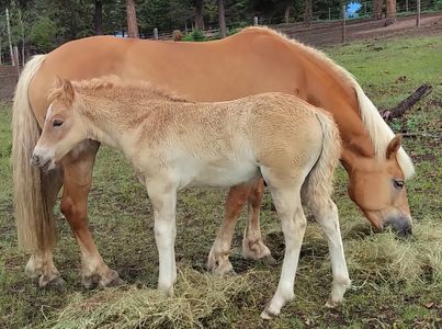 Known for the Haflinger's versatility and great trainability, willingness to work and to please, Bodhran BTA, sired by Bandito, was just recently sold to Alberta to a great ranching family, who will train and use him for all-around ranch and cattle work!
