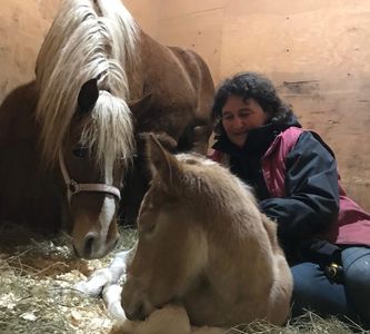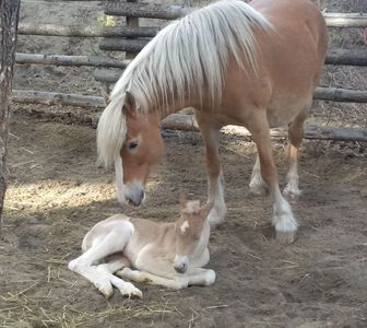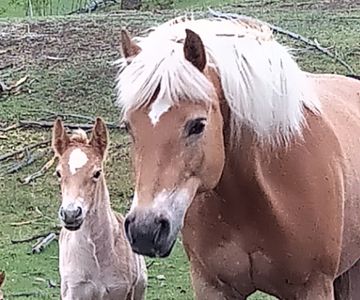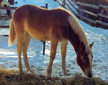 With her shorter stature, a beautiful, fine head and a strong and nicely balanced body, she represents the old-style Haflinger type.