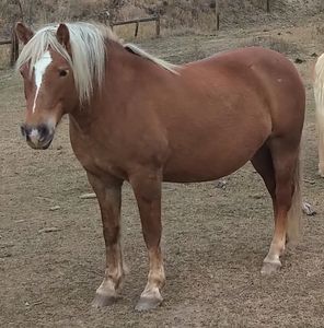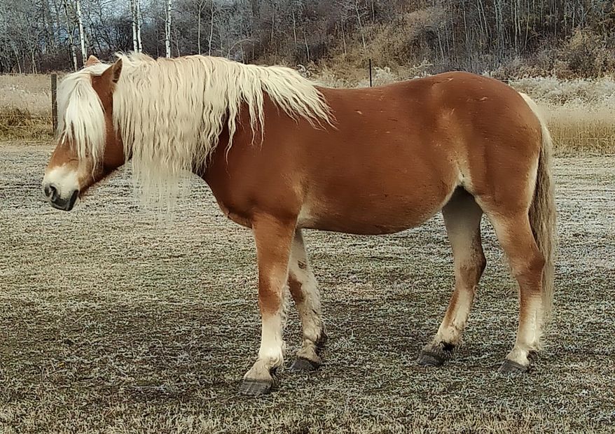 Maggie has served as a therapy horse for most of her life, then moved on to being a riding horse on Vancouver Island. After we brought her home in 2018, we used her as a lesson horse for one season (the kids lover her for her slow, smooth jog) before deciding to breed her for the first time. We bred her to Bandito in 2019 and got a stunning filly out of her in 2020 - "Quite Chilcotin BTA" We can't wait to see how she will develop with her new owner in Northern BC.